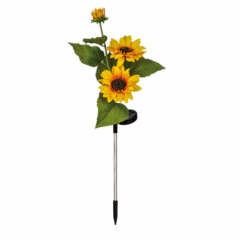 Solar Power Sunflower Garden Stake, 2 Blooms and 1