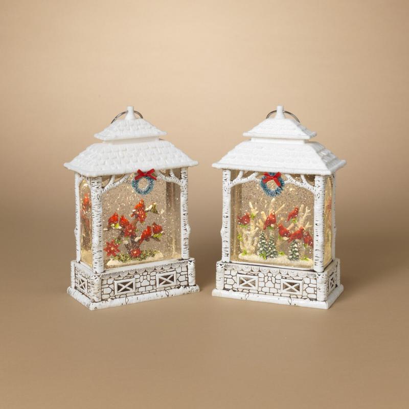Lighted Cardinal Spinning Water Globe Lantern 10.4"H