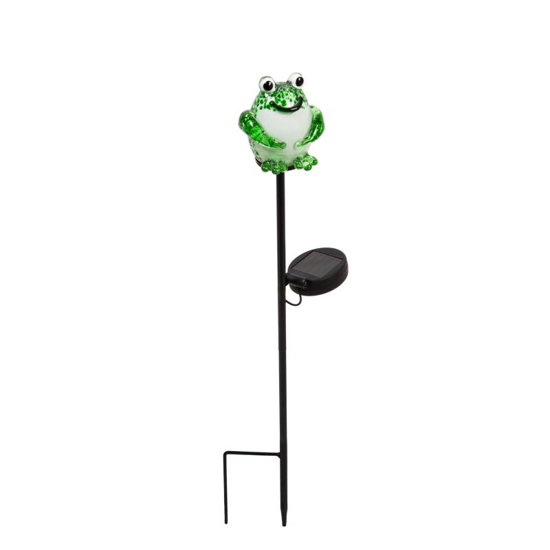 Solar Art Glass Garden Stake, Frog 22"H