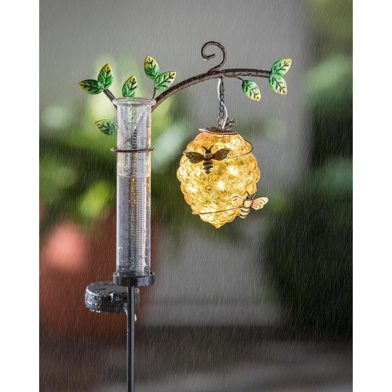 Beehive Solar Garden Stake With Rain Gauge 36" H