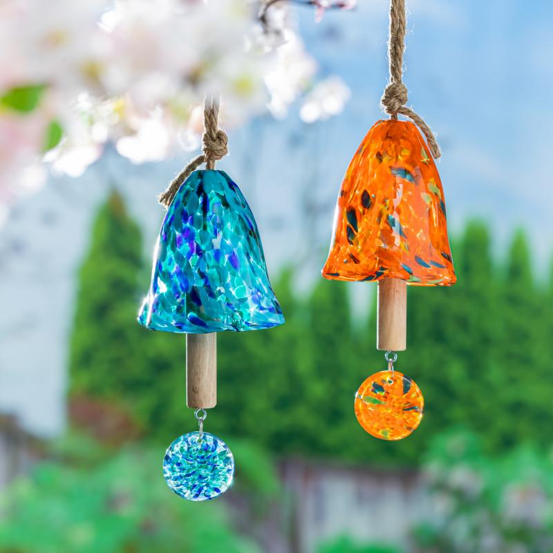 Art Glass Speckle Multi-color Bell Chime, Asst of