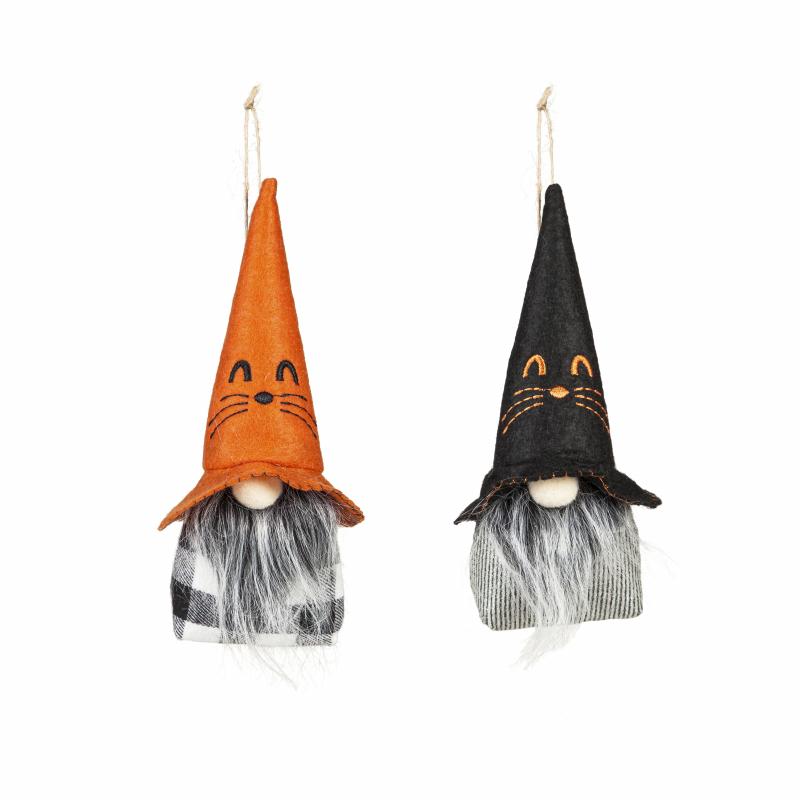Fabric Hanging Gnome With Cat Face Hat, 2 Asst.