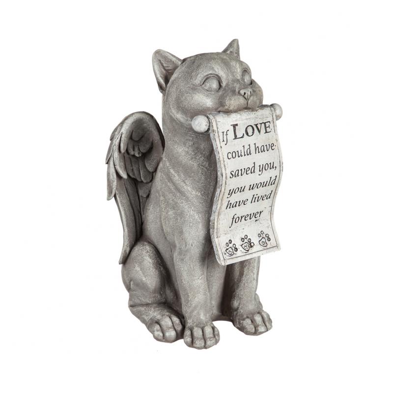 14"H Cat With Scroll Memorial Garden Statuary